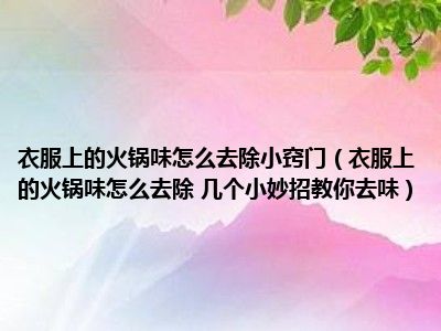 目前大家应该是对衣服上的火锅味怎么去除 几个小妙招教你去味比较感兴趣的,所以今天小编CC就来为大家整理了一些关于衣服上的火锅味怎么去除 几个小妙招教你去味方面的相关知识来分享给大家,希望大家会喜欢哦。