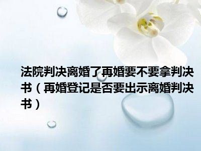 目前大家应该是对再婚登记是否要出示离婚判决书比较感兴趣的,所以今天CC就来为大家整理了一些关于再婚登记是否要出示离婚判决书方面的相关知识来分享给大家,希望大家会喜欢哦。