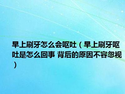 目前大家应该是对早上刷牙呕吐是怎么回事 背后的原因不容忽视比较感兴趣的,所以今天小编CC就来为大家整理了一些关于早上刷牙呕吐是怎么回事 背后的原因不容忽视方面的相关知识来分享给大家,希望大家会喜欢哦。