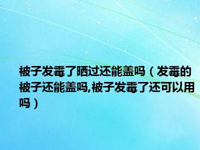 目前大家应该是对发霉的被子还能盖吗,被子发霉了还可以用吗比较感兴趣的,所以今天小编CC就来为大家整理了一些关于发霉的被子还能盖吗,被子发霉了还可以用吗方面的相关知识来分享给大家,希望大家会喜欢哦。