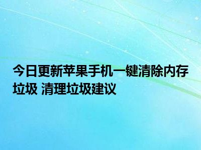 目前上述的内容应该能够为大家解答出大家对于苹果手机一键清除内存垃圾 清理垃圾建议的疑惑了,所以如果大家还想要了解更多的知识内容,也可以关注本站其他文章进行了解哦。