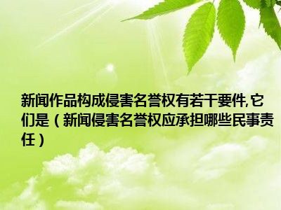 目前大家应该是对新闻侵害名誉权应承担哪些民事责任比较感兴趣的,所以今天CC就来为大家整理了一些关于新闻侵害名誉权应承担哪些民事责任方面的相关知识来分享给大家,希望大家会喜欢哦。