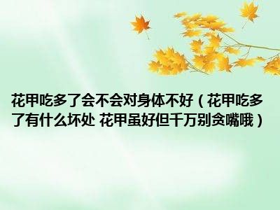 目前大家应该是对花甲吃多了有什么坏处 花甲虽好但千万别贪嘴哦比较感兴趣的,所以今天小编CC就来为大家整理了一些关于花甲吃多了有什么坏处 花甲虽好但千万别贪嘴哦方面的相关知识来分享给大家,希望大家会喜欢哦。