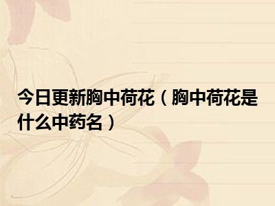 目前上述的内容应该能够为大家解答出大家对于胸中荷花(胸中荷花是什么中药名)的疑惑了,所以如果大家还想要了解更多的知识内容,也可以关注本站其他文章进行了解哦。