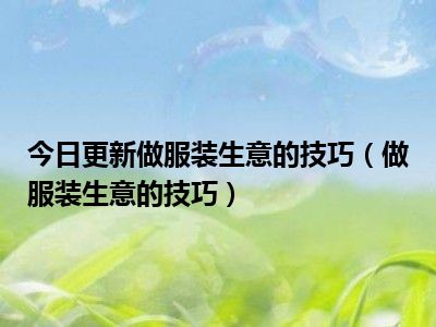 目前上述的内容应该能够为大家解答出大家对于做服装生意的技巧(做服装生意的技巧)的疑惑了,所以如果大家还想要了解更多的知识内容,也可以关注本站其他文章进行了解哦。