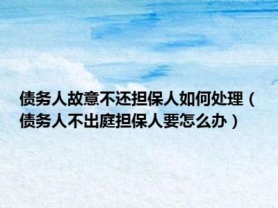目前大家应该是对债务人不出庭担保人要怎么办比较感兴趣的,所以今天CC就来为大家整理了一些关于债务人不出庭担保人要怎么办方面的相关知识来分享给大家,希望大家会喜欢哦。