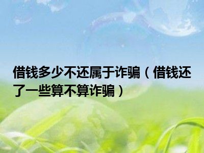 目前大家应该是对借钱还了一些算不算诈骗比较感兴趣的,所以今天CC就来为大家整理了一些关于借钱还了一些算不算诈骗方面的相关知识来分享给大家,希望大家会喜欢哦。