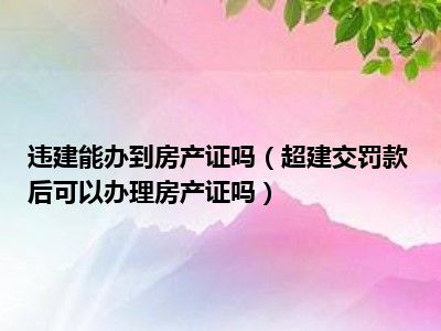导读 目前大家应该是对超建交罚款后可以办理房产证吗比较感兴趣的,所以今天好房网小编CC就来为大家整理了一些关于超建交罚款后可以办理房产证吗