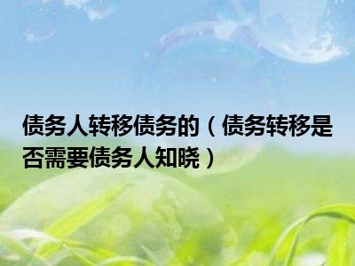 目前大家应该是对债务转移是否需要债务人知晓比较感兴趣的,所以今天CC就来为大家整理了一些关于债务转移是否需要债务人知晓方面的相关知识来分享给大家,希望大家会喜欢哦。