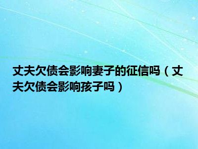目前大家应该是对丈夫欠债会影响孩子吗比较感兴趣的,所以今天CC就来为大家整理了一些关于丈夫欠债会影响孩子吗方面的相关知识来分享给大家,希望大家会喜欢哦。