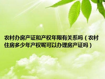 导读 目前大家应该是对农村住房多少年产权呢可以办理房产证吗比较感兴趣的,所以今天好房网小编CC就来为大家整理了一些关于农村住房多少年产权呢