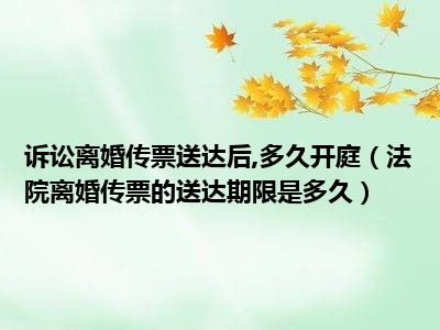 目前大家应该是对法院离婚传票的送达期限是多久比较感兴趣的,所以今天CC就来为大家整理了一些关于法院离婚传票的送达期限是多久方面的相关知识来分享给大家,希望大家会喜欢哦。