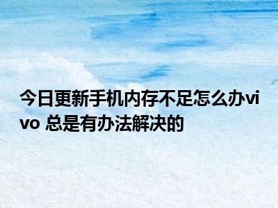 目前上述的内容应该能够为大家解答出大家对于手机内存不足怎么办vivo 总是有办法解决的的疑惑了,所以如果大家还想要了解更多的知识内容,也可以关注本站其他文章进行了解哦。