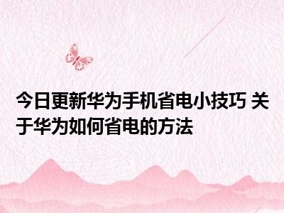 目前上述的内容应该能够为大家解答出大家对于华为手机省电小技巧 关于华为如何省电的方法的疑惑了,所以如果大家还想要了解更多的知识内容,也可以关注本站其他文章进行了解哦。