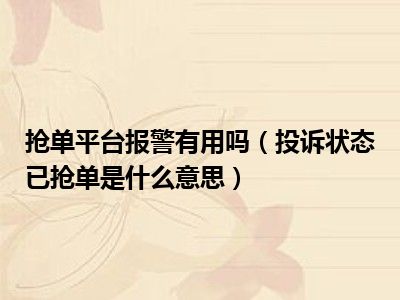 导读 1、投诉状态已抢单是什么意思2、投诉状态已抢到,表示货物已被快递员收到,然后耐心等待快递员到来。在网购平台上,如果商家没有按照约定时