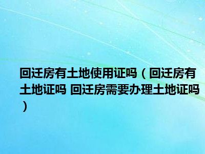 回迁房有土地使用证吗(回迁房有土地证吗 回迁房需要办理土地证吗)