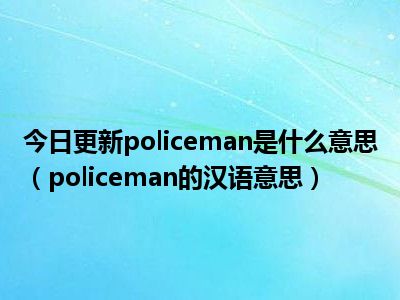 目前上述的内容应该能够为大家解答出大家对于policeman是什么意思(policeman的汉语意思)的疑惑了,所以如果大家还想要了解更多的知识内容,也可以关注本站其他文章进行了解哦。