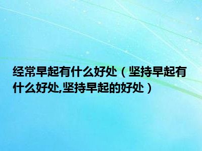 目前大家应该是对坚持早起有什么好处,坚持早起的好处比较感兴趣的,所以今天小编CC就来为大家整理了一些关于坚持早起有什么好处,坚持早起的好处方面的相关知识来分享给大家,希望大家会喜欢哦。