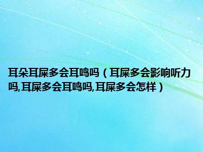 目前大家应该是对耳屎多会影响听力吗,耳屎多会耳鸣吗,耳屎多会怎样比较感兴趣的,所以今天小编CC就来为大家整理了一些关于耳屎多会影响听力吗,耳屎多会耳鸣吗,耳屎多会怎样方面的相关知识来分享给大家,希望大家会喜欢哦。