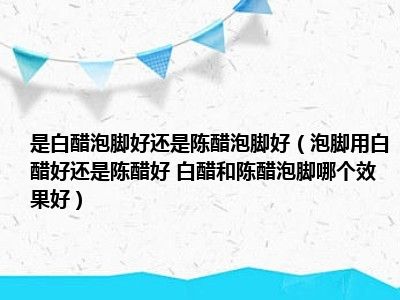 目前大家应该是对泡脚用白醋好还是陈醋好 白醋和陈醋泡脚哪个效果好比较感兴趣的,所以今天小编CC就来为大家整理了一些关于泡脚用白醋好还是陈醋好 白醋和陈醋泡脚哪个效果好方面的相关知识来分享给大家,希望大家会喜欢哦。