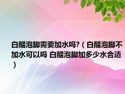 目前大家应该是对白醋泡脚不加水可以吗 白醋泡脚加多少水合适比较感兴趣的,所以今天小编CC就来为大家整理了一些关于白醋泡脚不加水可以吗 白醋泡脚加多少水合适方面的相关知识来分享给大家,希望大家会喜欢哦。