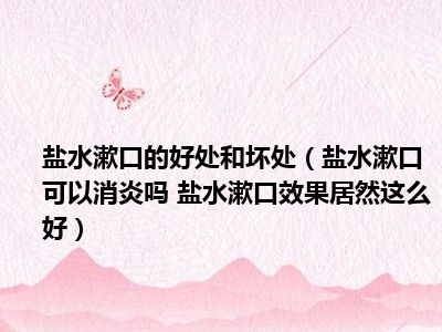 目前大家应该是对盐水漱口可以消炎吗 盐水漱口效果居然这么好比较感兴趣的,所以今天小编CC就来为大家整理了一些关于盐水漱口可以消炎吗 盐水漱口效果居然这么好方面的相关知识来分享给大家,希望大家会喜欢哦。