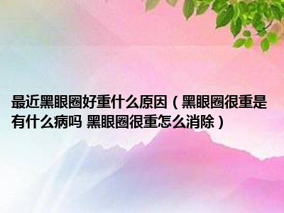 目前大家应该是对黑眼圈很重是有什么病吗 黑眼圈很重怎么消除比较感兴趣的,所以今天小编CC就来为大家整理了一些关于黑眼圈很重是有什么病吗 黑眼圈很重怎么消除方面的相关知识来分享给大家,希望大家会喜欢哦。