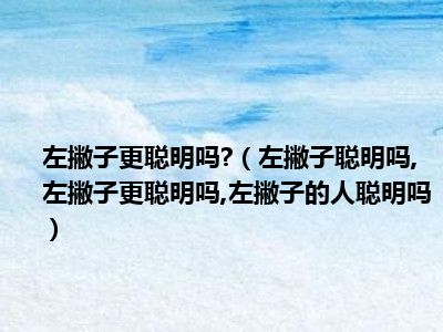 目前大家应该是对左撇子聪明吗,左撇子更聪明吗,左撇子的人聪明吗比较感兴趣的,所以今天小编CC就来为大家整理了一些关于左撇子聪明吗,左撇子更聪明吗,左撇子的人聪明吗方面的相关知识来分享给大家,希望大家会喜欢哦。