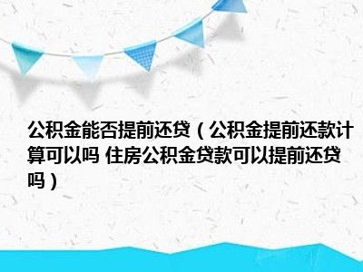 可以,因为提前还款的确可以比原定贷款计划少还许多利息,是一个省钱的好办法;但是如果您提前还款了,这时自有流动资金将会明显减少,如果再遇到好的投资渠道或者其他情况急需资金时,又可能会捉襟见肘。例如我们会经常遇到这样一类职工,贷款后没几年就匆匆将贷款全部还了,结果购房之后房屋装修还需要一笔较大的开支,为了装修又不得不去银行办理消费贷款,在相同贷款金额前提下,此类贷款的利息支出要远大于公积金贷款的利息支出,因此是否应该住房公积金提前还款应充分考虑多种因素,量力而行。拓展资料:住房公积金提前还款根本不存在提前收息或多收利息的问题。根据住房公积金贷款的计息原则,贷款职工每月还贷利息=当月剩余贷款本金*贷款月利率;每月还贷本金=月还款额-每月还贷利息