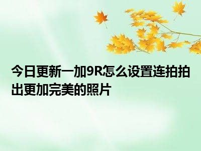 目前上述的内容应该能够为大家解答出大家对于一加9R怎么设置连拍,拍出更加完美的照片的疑惑了,所以如果大家还想要了解更多的知识内容,也可以关注本站其他文章进行了解哦。