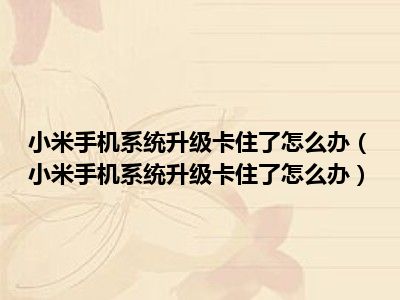 导读 1、小米手机系统升级卡住了怎么办2、小米手机系统升级卡死问题的解决方案是:有时候加载更新10到20分钟是正常的。如果过了一段时间还是这样