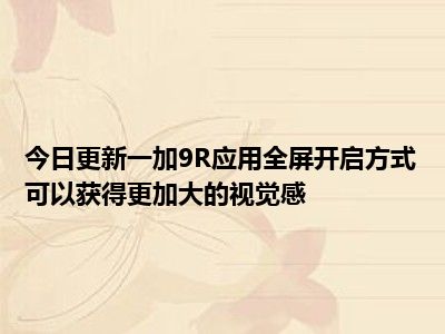 目前上述的内容应该能够为大家解答出大家对于一加9R应用全屏开启方式,可以获得更加大的视觉感的疑惑了,所以如果大家还想要了解更多的知识内容,也可以关注本站其他文章进行了解哦。