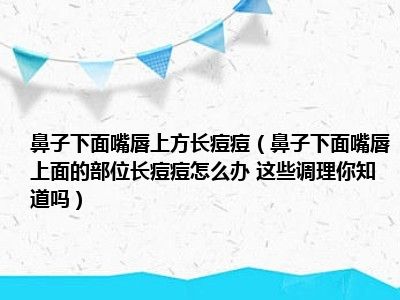 目前大家应该是对鼻子下面嘴唇上面的部位长痘痘怎么办 这些调理你知道吗比较感兴趣的,所以今天小编CC就来为大家整理了一些关于鼻子下面嘴唇上面的部位长痘痘怎么办 这些调理你知道吗方面的相关知识来分享给大家,希望大家会喜欢哦。