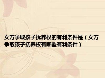 目前大家应该是对女方争取孩子抚养权有哪些有利条件比较感兴趣的,所以今天CC就来为大家整理了一些关于女方争取孩子抚养权有哪些有利条件方面的相关知识来分享给大家,希望大家会喜欢哦。