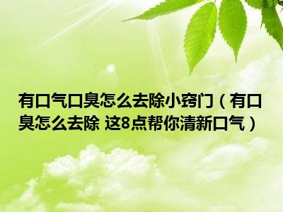 目前大家应该是对有口臭怎么去除 这8点帮你清新口气比较感兴趣的,所以今天小编CC就来为大家整理了一些关于有口臭怎么去除 这8点帮你清新口气方面的相关知识来分享给大家,希望大家会喜欢哦。