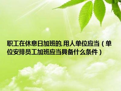 目前大家应该是对单位安排员工加班应当具备什么条件比较感兴趣的,所以今天CC就来为大家整理了一些关于单位安排员工加班应当具备什么条件方面的相关知识来分享给大家,希望大家会喜欢哦。