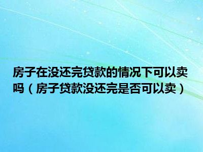 目前大家应该是对房子贷款没还完是否可以卖比较感兴趣的,所以今天CC就来为大家整理了一些关于房子贷款没还完是否可以卖方面的相关知识来分享给大家,希望大家会喜欢哦。