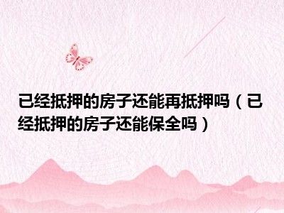 目前大家应该是对已经抵押的房子还能保全吗比较感兴趣的,所以今天CC就来为大家整理了一些关于已经抵押的房子还能保全吗方面的相关知识来分享给大家,希望大家会喜欢哦。