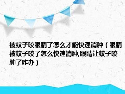 目前大家应该是对眼睛被蚊子咬了怎么快速消肿,眼睛让蚊子咬肿了咋办比较感兴趣的,所以今天小编CC就来为大家整理了一些关于眼睛被蚊子咬了怎么快速消肿,眼睛让蚊子咬肿了咋办方面的相关知识来分享给大家,希望大家会喜欢哦。
