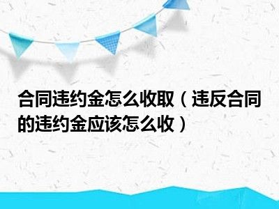 目前大家应该是对违反合同的违约金应该怎么收比较感兴趣的,所以今天CC就来为大家整理了一些关于违反合同的违约金应该怎么收方面的相关知识来分享给大家,希望大家会喜欢哦。