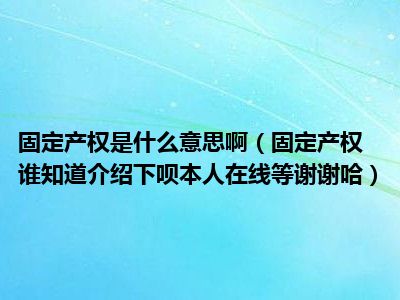 导读 目前大家应该是对固定产权谁知道介绍下呗本人在线等谢谢哈!比较感兴趣的,所以今天好房网小编CC就来为大家整理了一些关于固定产权谁知道介