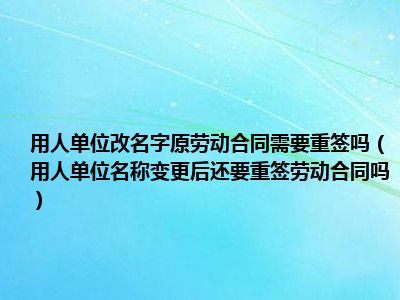 导读目前大家应该是对用人单位名称变更后还要重签劳动合同吗比较感兴趣的,所以今天CC就来为大家整理了一些关于用人单位名称变更后还要重签劳动...