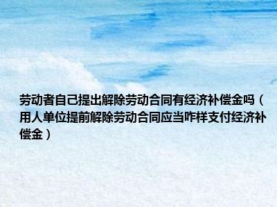 目前大家应该是对用人单位提前解除劳动合同应当咋样支付经济补偿金比较感兴趣的,所以今天CC就来为大家整理了一些关于用人单位提前解除劳动合同应当咋样支付经济补偿金方面的相关知识来分享给大家,希望大家会喜欢哦。