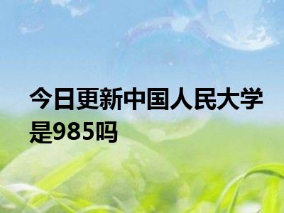 中国人民大学是985。中国人民大学简称人大,是教育部直属高校,教育部与北京市共建,位列国家首批双一流(A类)、211工程、985工程,为世界大学联盟、国际应用科技开发协作网、亚太国际教育协会、京港大学联盟成员,是一所以人文社会科学为主的综合性研究型全国重点大学。