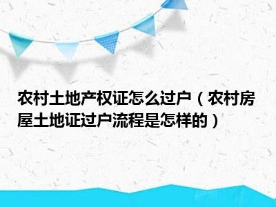 导读 目前大家应该是对农村房屋土地证过户流程是怎样的比较感兴趣的,所以今天好房网小编CC就来为大家整理了一些关于农村房屋土地证过户流程是怎