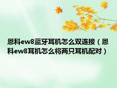 导读 1、ENEW8耳机之间的配对方法2、1 将科恩ew8耳机的两个耳机放入充电盒,边充电边激活耳机。耳机放入充电盒会自动关闭,然后关闭充电盒。3、2