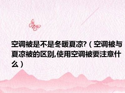 目前大家应该是对空调被与夏凉被的区别,使用空调被要注意什么比较感兴趣的,所以今天小编CC就来为大家整理了一些关于空调被与夏凉被的区别,使用空调被要注意什么方面的相关知识来分享给大家,希望大家会喜欢哦。