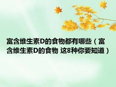目前大家应该是对富含维生素D的食物 这8种你要知道比较感兴趣的,所以今天小编CC就来为大家整理了一些关于富含维生素D的食物 这8种你要知道方面的相关知识来分享给大家,希望大家会喜欢哦。