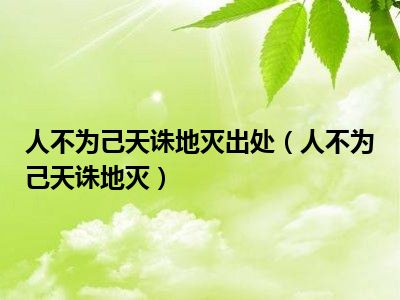 导读 相信目前很多小伙伴对于人不为己天诛地灭都比较感兴趣,那么小搜今天在网上也是收集了一些与人不为己天诛地灭相关的信息来分享给大家,希望