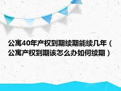一、购买公寓40年产权到期后只要房子还能住,就都得续签土地。根据国家现行的相关规定,土地到期后按照当时的楼面毛地指导价格,依一定比例缴费。二、土地使用权是国家向组织、机构及个人出让的土地使用权利,根据《中华人民共和国宪法》,土地的所有权归国家和集体所有。土地使用权在出让时根据开发类型分为不同的使用年限,民用住宅用地权属年限**高为70年,工业用建筑用地和综合类用地**高为50年,商用建筑用地**高为40年。房屋所有权属于个人产权,是私有财产权的一种,是得到《中华人民共和国宪法》保护的。根据《中华人民共和国物权法》(自2007年10月1日起施行)第六十四条,私人对其合法的收入、房屋、生活用品、生产工具、原材料等不动产和动产享有所有权。其年限是永久的。土地使用权和房屋所有权的区别在于:房屋所有权(即房产权)是永久的,没有期限限制,只要房产没有完全毁损灭失就能一直享有,“房产证里是没有期限登记栏的”;土地使用权是有期限的。国家通过土地有期出让方式,授予用地人40年、50年、70年不等的使用权。房子的所有权是永久的,只要房子不塌,这房子就一直是产权人的。但我们是社会主义国家,土地是国家的。根据项目的立项不同,租用国家土地的周期也不同,住宅70年,工业/科教文卫体/综合类50年,商业/旅游/娱乐40年。三、土地使用年限到期后:延长土地使用权期限。可以由房屋业主联名提出,补交土地出让金,这个价格应该低于同类的土地出让金的价格,类似于成本价和市场价的差额。根据规划需要,国家收回土地和地上建筑物的,对业主进行相应补偿,用类似拆迁安置的办法解决。